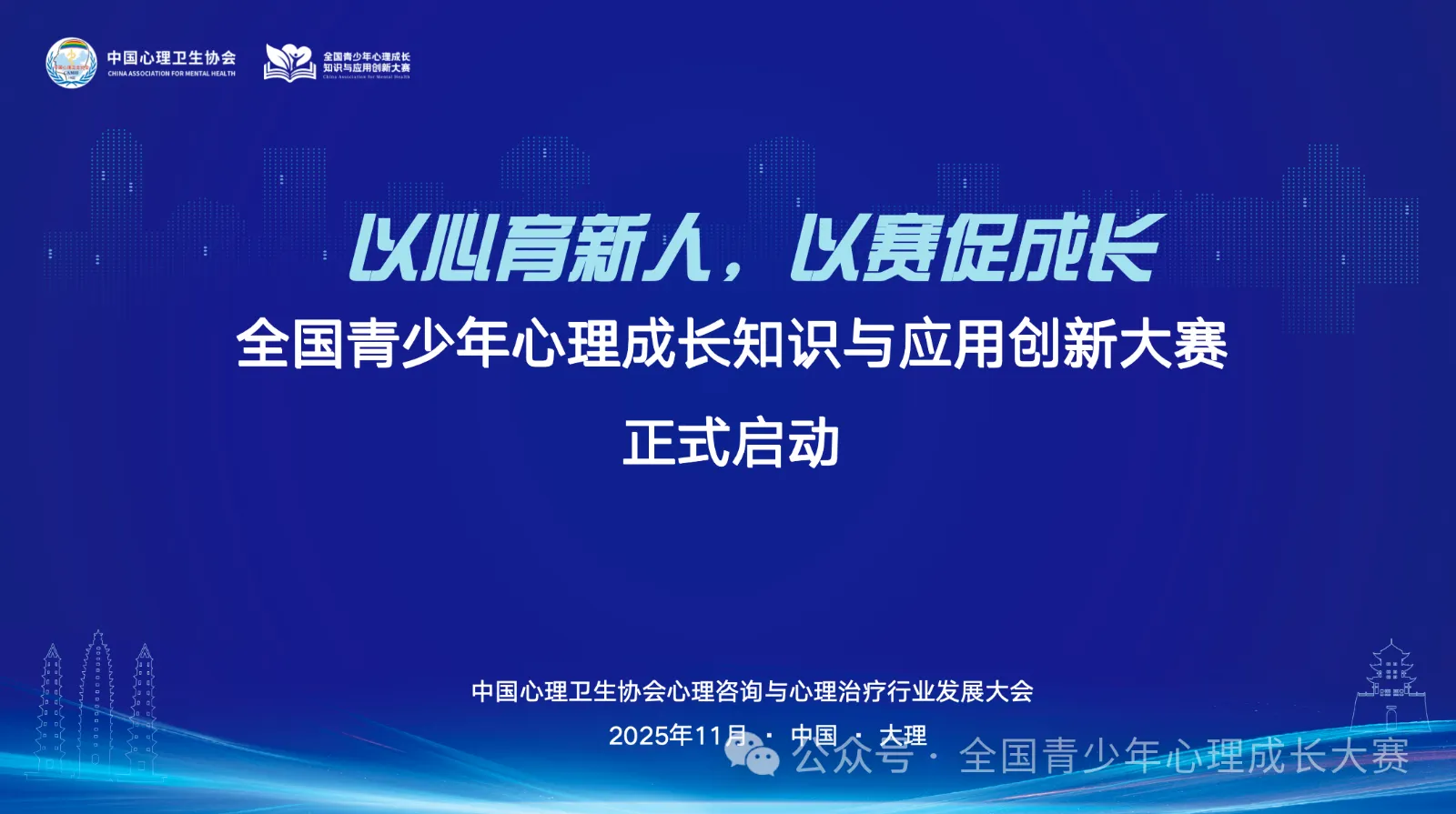 11月29日,由中国心理卫生协会主办的“心理咨询与心理治疗行业发展大会暨大理首届心理健康文化周”宣布,全国青少年心理成长知识与应用创新大赛正式启动。该赛事首次入选教育部2025—2028学年面向中小学生的全国性竞赛活动名单(即“白名单”),也是白名单赛事中唯一一项与“心理健康”有关的赛事。