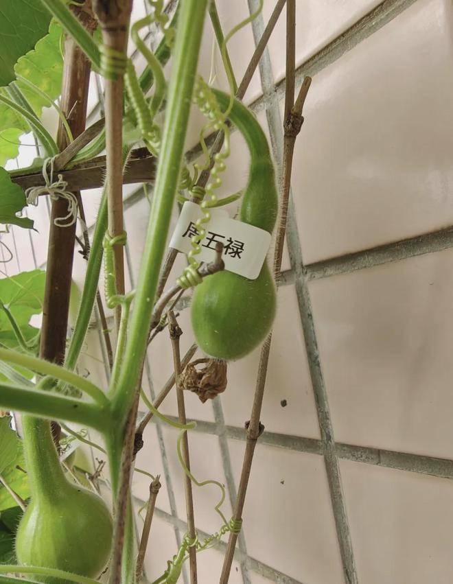 张春自己种植的葫芦和给葫芦做的姓名牌