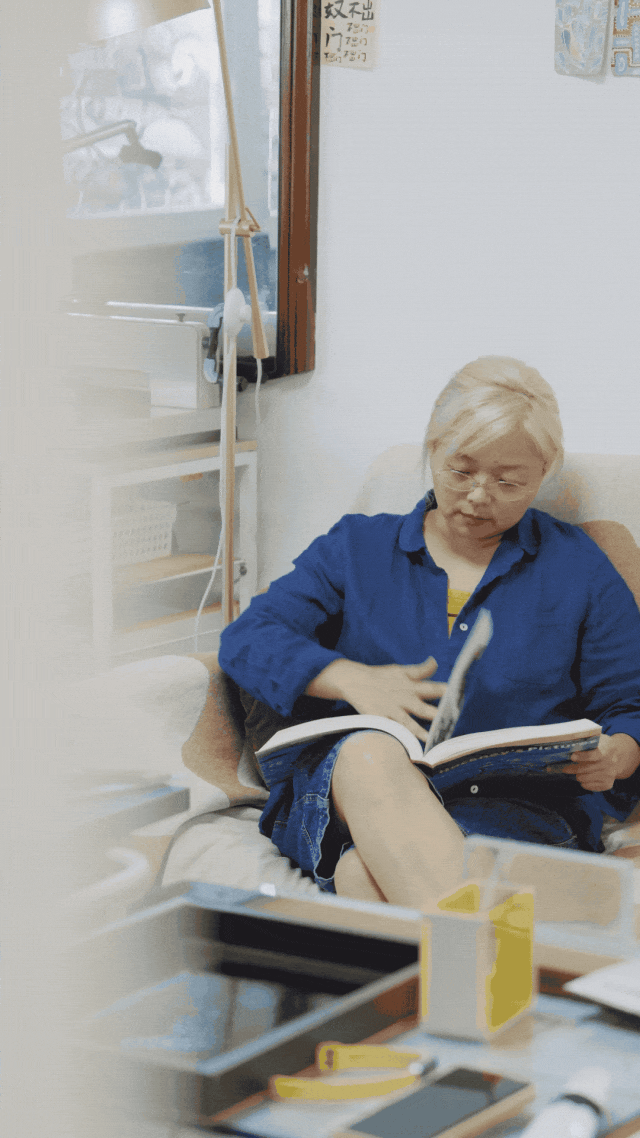 工作室是她业余时间画板画、做泥塑的地方。在有咨询工作的日子,她会沿着海边步道,双手抱胸地站在平衡车上,从这里一路伴着海风海浪,像女巫骑着扫帚一样“飞”向她的咨询室。